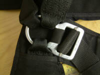 Double-wide Legpads. Not only are the legpads double-wide, but so is the webbing inside. This keeps the padding from 'bunching up' and adds incredible comfort under canopy. Great for longer times 'in the saddle' and for jumpers who use the harness to help steer their canopy. Note how the legpad tapers down to single-wide at the end, where it returns on the inside of your leg; again, more comfort.